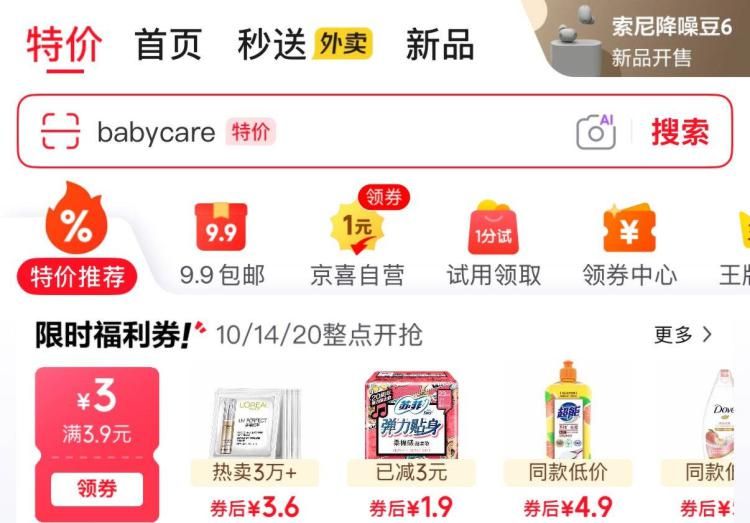 JD首页特价-领3.9-3卷可心柔40抽5包4.9亓https://